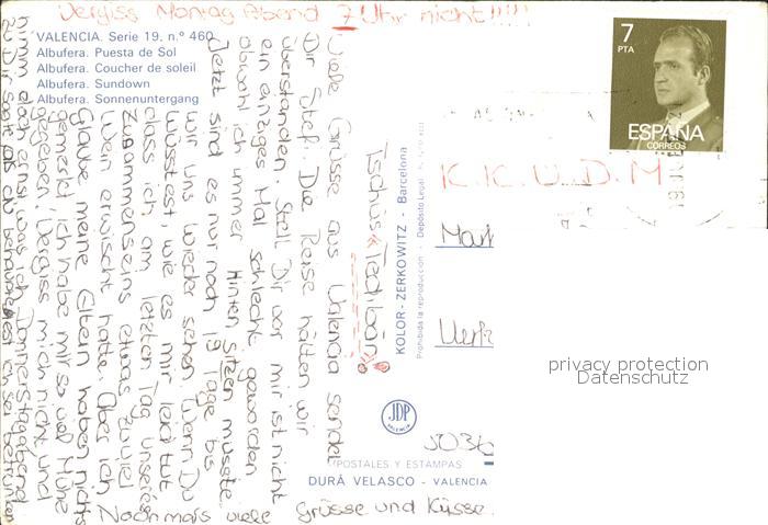 old postcard Valencia Valenciana Albufera Puesta de Sol postalisch gelaufen Erhaltung siehe scans