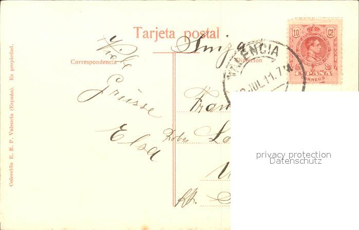 old postcard Valencia Valenciana Estatua del Rey Don Jaime en el Parterre postalisch gelaufen Erhaltung siehe scans