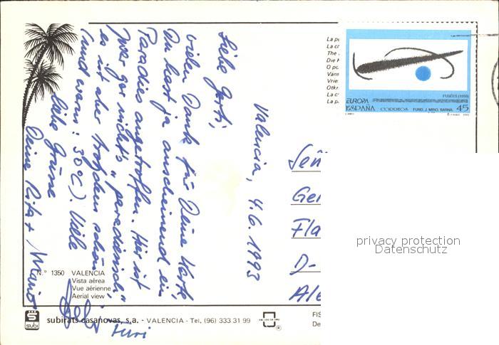 old postcard Valencia Valenciana Luftbild postalisch gelaufen Erhaltung siehe scans