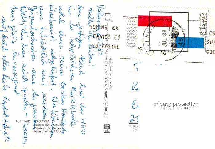 old postcard Valencia Valenciana Palacio de la Musique postalisch gelaufen Erhaltung siehe scans [LiesaD40]