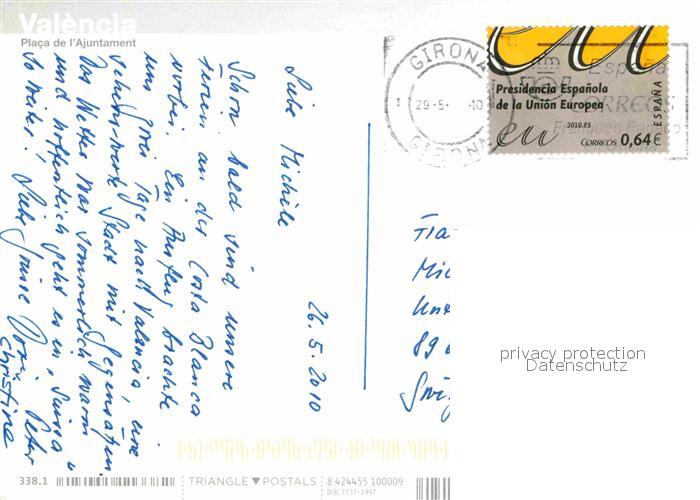 old postcard Valencia Valenciana Placa Ajuntament postalisch gelaufen Erhaltung siehe scans [KathaD79]