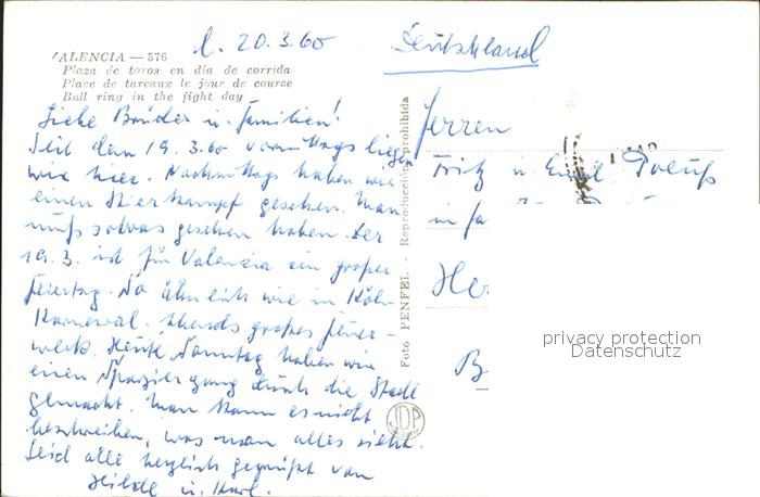 old postcard Valencia Valenciana Plaza de torros en dia de corrida postalisch gelaufen Erhaltung siehe scans