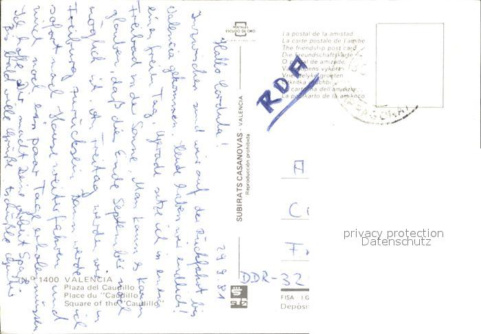 old postcard Valencia Valenciana Plaza del Caudillo postalisch gelaufen Erhaltung siehe scans