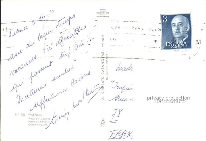 old postcard Valencia Valenciana Plaza del Caudillo postalisch gelaufen Erhaltung siehe scans