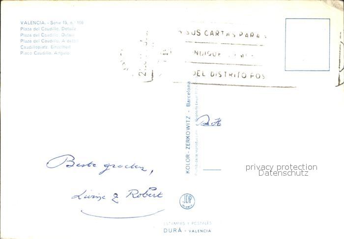 old postcard Valencia Valenciana Plaza del Caudillo Fuente postalisch gelaufen Erhaltung siehe scans