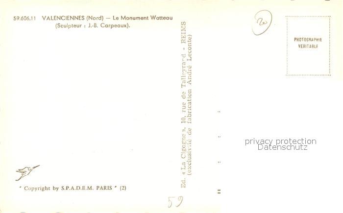 13525068 Valenciennes Monument Watteau Sculpteur J. B. Carpeaux postalisch nicht gelaufen Erhaltung siehe scans [FriedD77] KatCode: 11170059659606