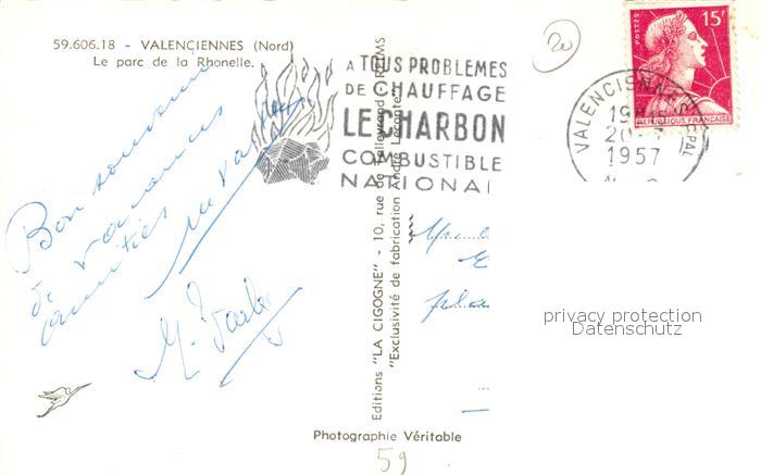 13525067 carte postale Valenciennes Parc de la Rhonelle Etang postalisch gelaufen Erhaltung siehe scans [FriedD77] KatCode: 11170059659606