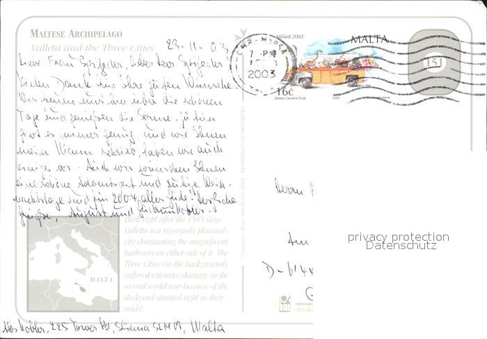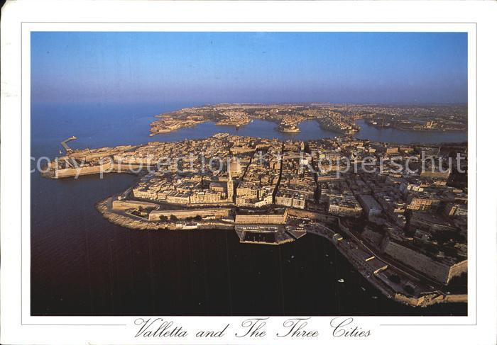 old postcard Valetta Malta and The Three Cities Fliegeraufnahme postalisch gelaufen Erhaltung siehe scans