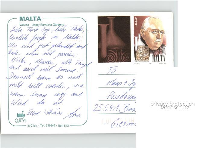 old postcard Valetta Malta Upper Barrakka Gardens postalisch gelaufen Erhaltung siehe scans
