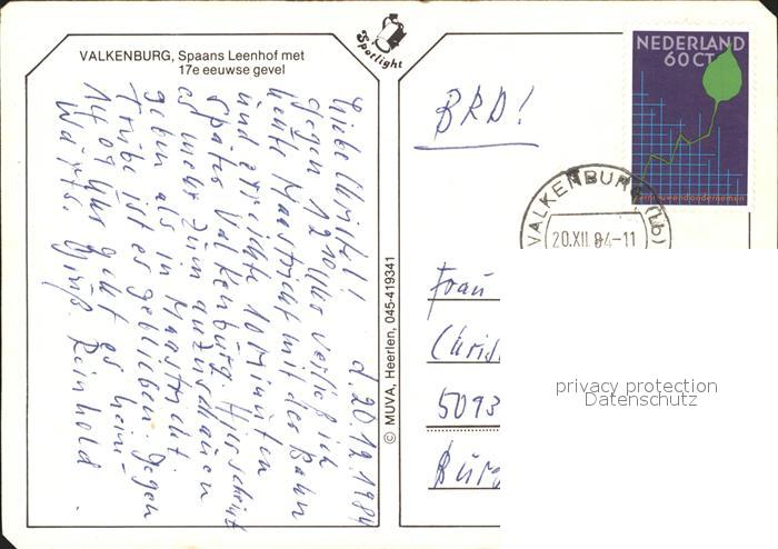 old postcard Valkenberg Niederlande Spaans Leenhof postalisch gelaufen Erhaltung siehe scans