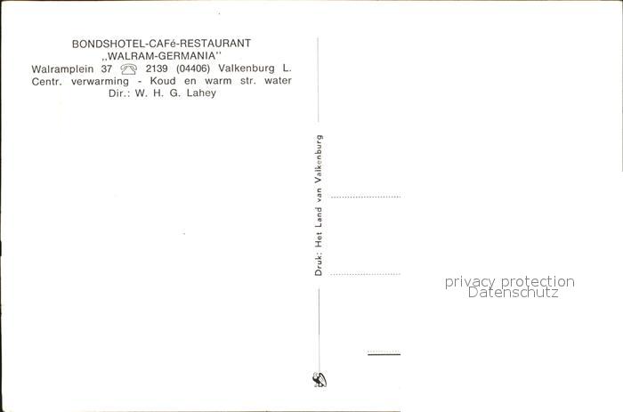Valkenburg aan de Geul Bondshotel Cafe Restaurant Walram Germania postalisch nicht gelaufen Erhaltung siehe scans