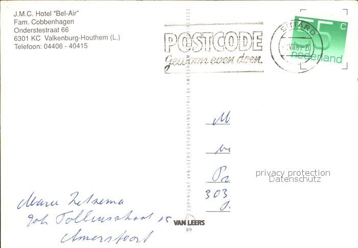 old postcard Valkenburg aan de Geul Hotel Bel-Air postalisch gelaufen Erhaltung siehe scans