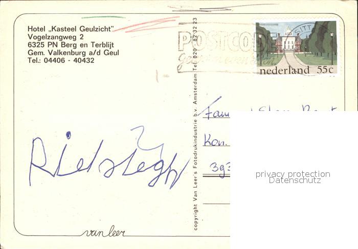 old postcard Valkenburg aan de Geul Hotel Kastell Geulzicht postalisch gelaufen Erhaltung siehe scans