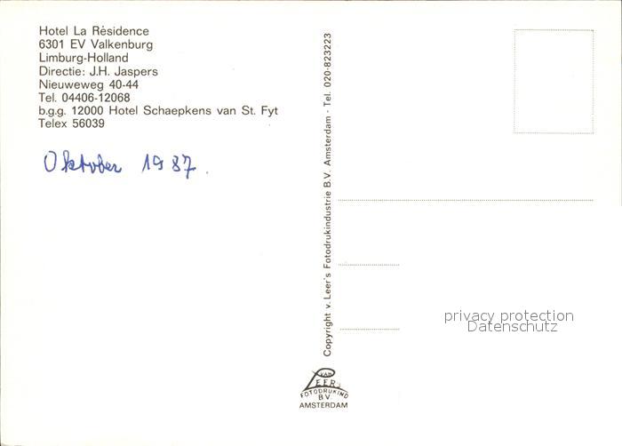 Valkenburg aan de Geul Hotel La Residence postalisch nicht gelaufen Erhaltung siehe scans