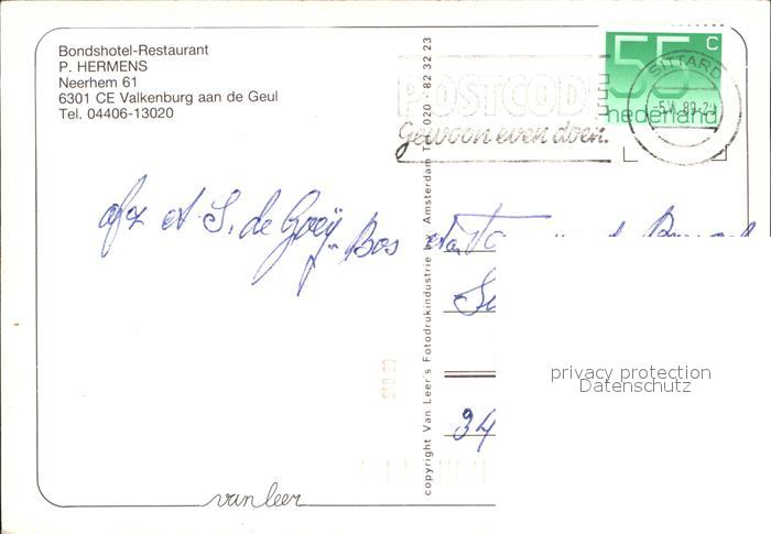 old postcard Valkenburg aan de Geul Hotel Restaurant Hermens postalisch gelaufen Erhaltung siehe scans
