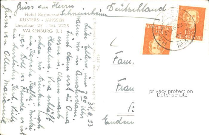alte Postkarte Valkenburg aan de Geul Hotel Restaurant Kusters Janssen postalisch gelaufen Erhaltung siehe scans