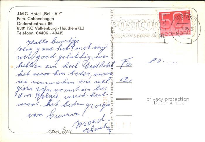 old postcard Valkenburg aan de Geul J.M.C. Hotel Bel Air postalisch gelaufen Erhaltung siehe scans