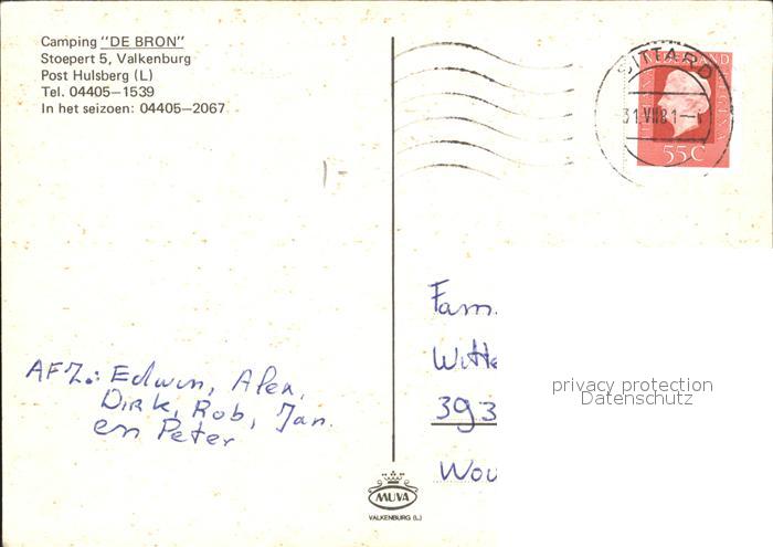 old postcard Valkenburg Suedholland Camping De Bron Eingang Ferienhaeuser Campingplatz postalisch gelaufen Erhaltung siehe scans
