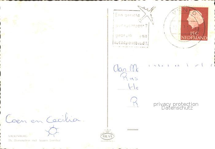 old postcard Valkenburg Suedholland Dorrenplein met Spaans Leenhof postalisch gelaufen Erhaltung siehe scans