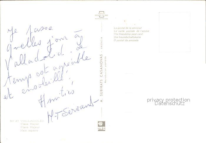 Valladolid Plaza Mayor postalisch nicht gelaufen Erhaltung siehe scans