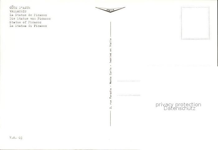 12316725 Vallauris Picasso Statue postalisch nicht gelaufen Erhaltung siehe scans KatCode: 11170006106155