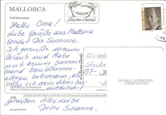 old postcard Valldemossa Mallorca Ortsansicht mit Kirche postalisch gelaufen Erhaltung siehe scans