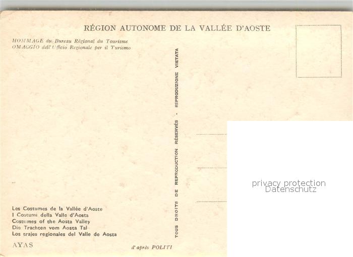 Valle d Aosta Costumi Trachten postalisch nicht gelaufen Erhaltung siehe scans [PaolaD17]
