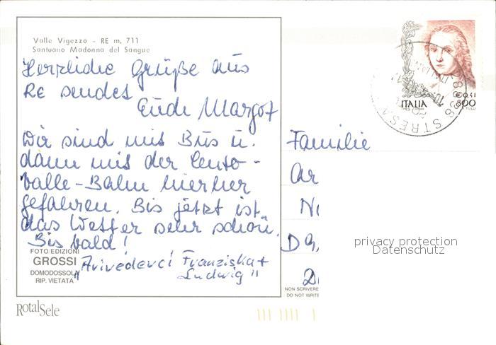 old postcard Valle Vigezzo Santuario Madonna del Sangue postalisch gelaufen Erhaltung siehe scans
