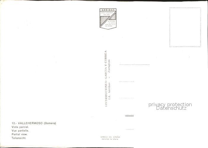 Vallehermoso Fliegeraufnahme postalisch nicht gelaufen Erhaltung siehe scans
