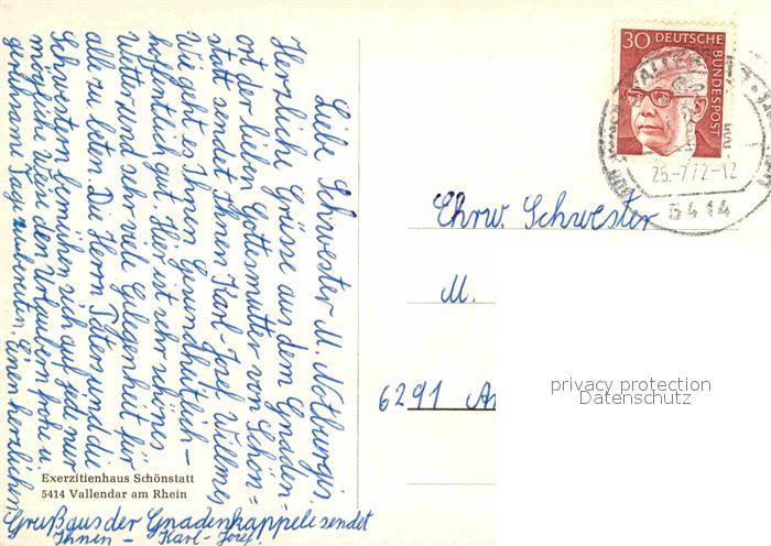72902595 alte Postkarte Vallendar Exerzitienhaus Schoenstatt Baumbluete postalisch gelaufen Erhaltung siehe scans [FriedD77] KatCode: 11110007137226