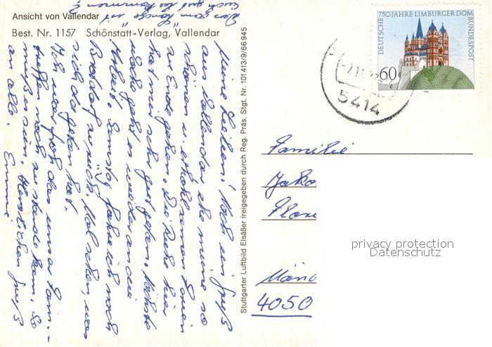 73119032 alte Postkarte Vallendar Fliegeraufnahme postalisch gelaufen Erhaltung siehe scans [NatalD47] KatCode: 11110007137226