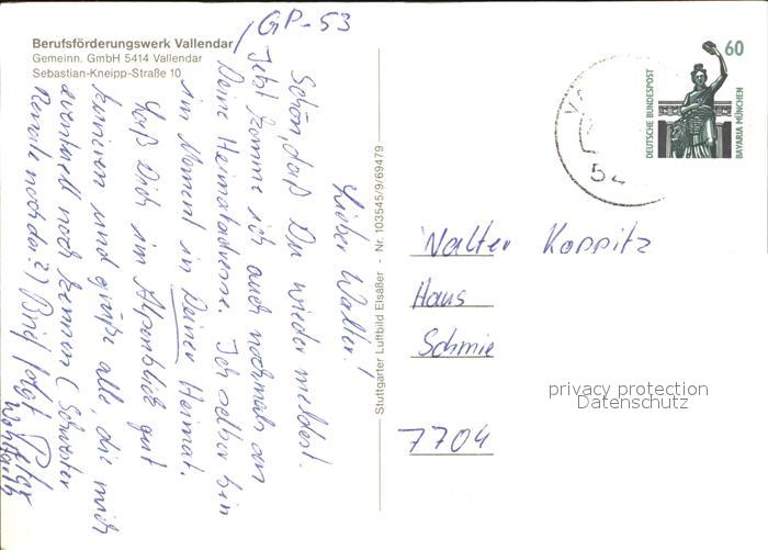 72539287 alte Postkarte Vallendar Fliegeraufnahme Berufsfoerderungswerk postalisch gelaufen Erhaltung siehe scans [AndreD76 kt119box] KatCode: 11110007137226