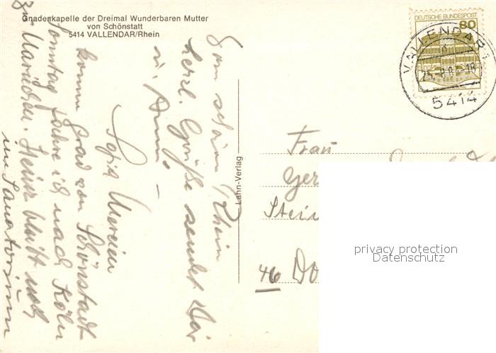 73267722 alte Postkarte Vallendar Gnadenkapelle der Dreimal Wunderbaren Mutter von Schoenstatt postalisch gelaufen Erhaltung siehe scans [WerneD78] KatCode: 11110007137226