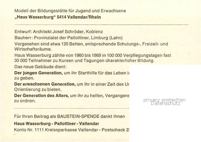 73152074 Vallendar Haus Wasserburg postalisch nicht gelaufen Werbekarte (keine Postkarte) Erhaltung siehe scans [KathaD81] KatCode: 11110007137226
