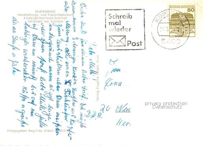 73149150 alte Postkarte Vallendar Marienburg Haushaltungs- und Frauenfachschule Fliegeraufnahme postalisch gelaufen Erhaltung siehe scans [FriedD77] KatCode: 11110007137226