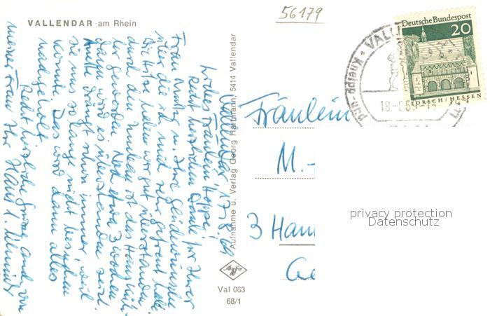73761769 alte Postkarte Vallendar Panorama Rheintal postalisch gelaufen Fliegeraufnahme Erhaltung siehe scans [FriedD77] KatCode: 11110007137226