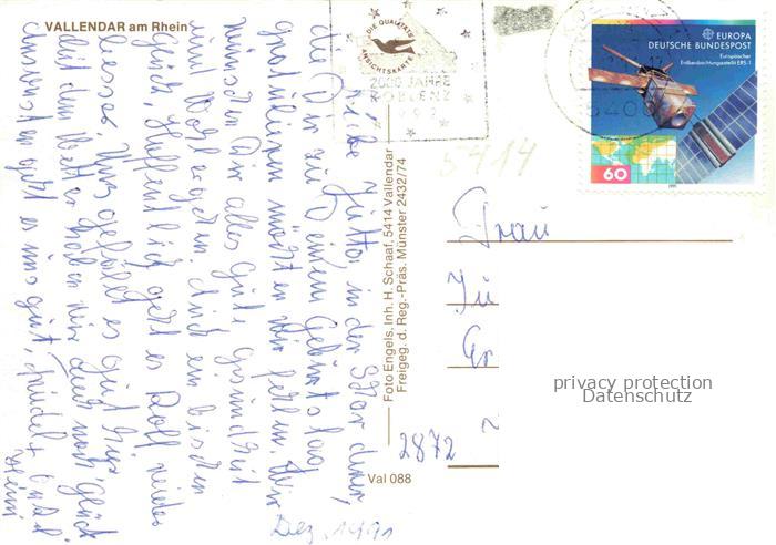 74166645 alte Postkarte Vallendar Rhein Bruecke Fliegeraufnahme Stadtansicht Hochhaus Fluss postalisch gelaufen Fliegeraufnahme Erhaltung siehe scans [Karloger] KatCode: 11110007137226