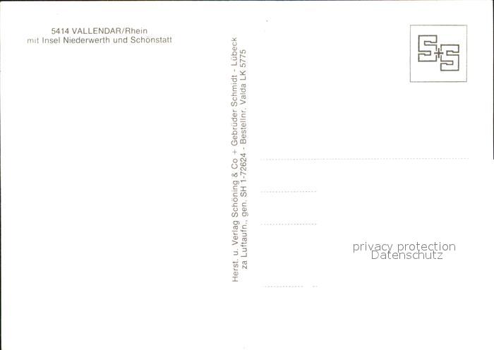 72600594 Vallendar Rhein Insel Niederwerth und Schoenstatt Fliegeraufnahme postalisch nicht gelaufen Erhaltung siehe scans [FriedD77] KatCode: 11110007137226