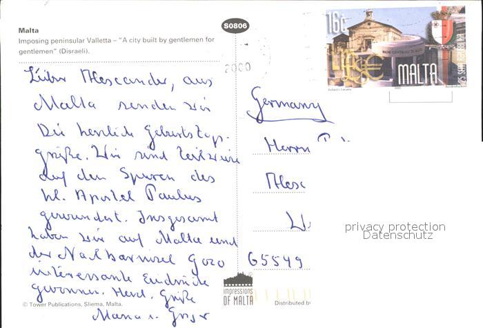 old postcard Valletta Fliegeraufnahme postalisch gelaufen Erhaltung siehe scans