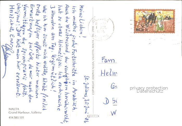 old postcard Valletta Grand Harbour postalisch gelaufen