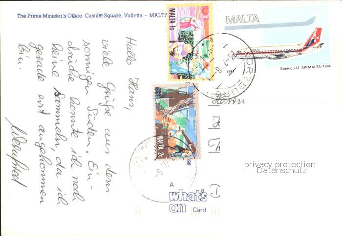 old postcard Valletta Prime Minister’s Office Castille Square postalisch gelaufen Erhaltung siehe scans