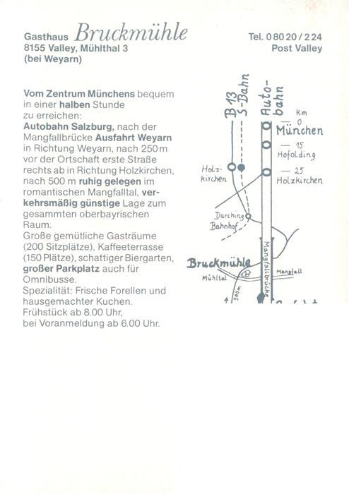 73896334 Valley Oberbayern Hotel Gasthof Bruckmuehle postalisch nicht gelaufen Werbekarte (keine Postkarte) Erhaltung siehe scans [WerneD78] KatCode: 11110009182133