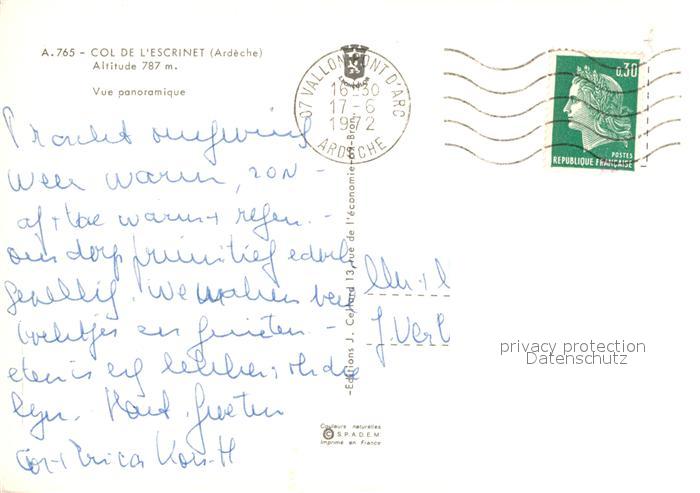 12950670 carte postale Vallon-Pont-d Arc Colde l’Escrinet postalisch gelaufen Erhaltung siehe scans [WerneD78] KatCode: 11170007107330