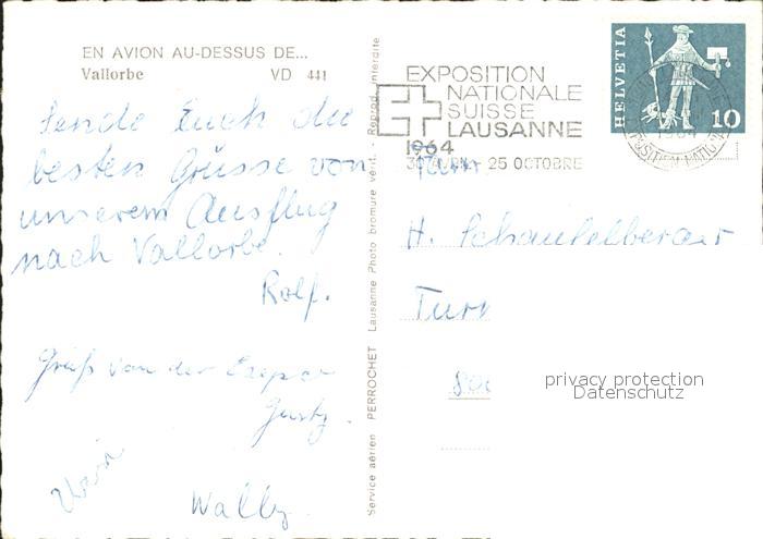 11647060 alte Postkarte Vallorbe Vue aerienne postalisch gelaufen Erhaltung siehe scans KatCode: 11470240820710