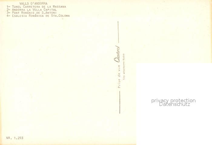 old postcard Valls d Andorra Tunel Carretera de la Massana Andorra la Vella Capital Pont Romanic de S Antoni Esglesia Romanica de Sta Coloma postalisch gelaufen Erhaltung siehe scans [WerneD78]
