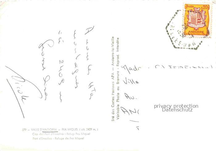 74086034 old postcard Valls d Andorra Vals d’Andorra fra Miqueil postalisch gelaufen Erhaltung siehe scans [WerneD78] KatCode: 11030