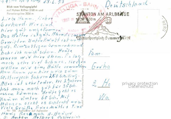 72819236 alte Postkarte Valluga Panorama Blick vom Vallugagipfel auf Hohen Riffler und Parseierspitze Alpenpanorama postalisch gelaufen Erhaltung siehe scans [FriedD77] KatCode: 11390
