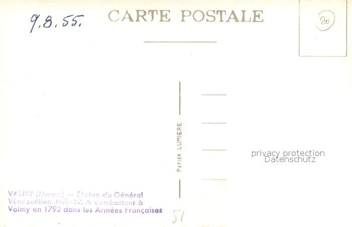 13506613 Valmy Marne Monument Statue du General Miranda postalisch nicht gelaufen Erhaltung siehe scans [FriedD77] KatCode: 11170051551588
