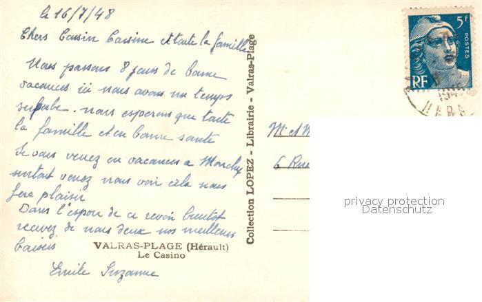 13578914 carte postale Valras-Plage Casino postalisch gelaufen Erhaltung siehe scans [FriedD77] KatCode: 11170034134324