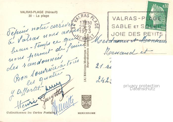 13590138 Valras-Plage La Plage postalisch gelaufen Erhaltung siehe scans [WerneD78] carte postale Wern Katcode 11170034134324